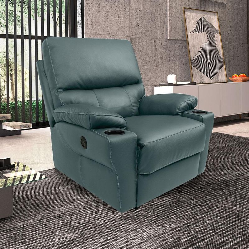 MóveisPoltronaPoltrona do Papai Sala de Cinema Mia Reclinável Retrátil Power Elétrico Base Fixa Couro Azul Majestic G40 - Gran Belo