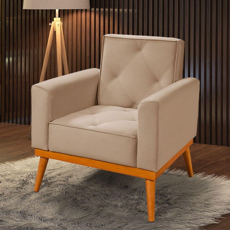 Desfrute de momentos relaxantes e aconchegantes com a Poltrona Florença. Seja para ler um livro, assistir televisão ou simplesmente relaxar após um longo dia, ela pode transformar a sua sala de estar ou quarto em um refúgio de conforto e estilo.Tipo: PoltronaModelo: FlorençaCor: BegeTecido: VeludoDIMENSÕES DO PRODUTOAltura Total: 85cmAltura Encosto: 44cmAltura Braço: 34cmAltura Assento: 19cmAltura Assento até o chão: 27cmAltura Pés: 22cmLargura Total: 72cmLargura Encosto: 50cmLargura Braço: 12cmComprimento Total: 73cmComprimento Braço: 64cmComprimento Assento: 51cmATENÇÃOAS IMAGENS SÃO MERAMENTE ILUSTRATIVAS E PODEM SOFRER VARIAÇÕES DE COR E PEQUENOS DETALHES DE ACORDO COM O SEU MONITOR, ILUMINAÇÃO DO AMBIENTE E ATÉ MESMO A SUA PERCEPÇÃO VISUAL.Poltrona Florença Veludo Bege