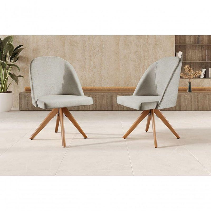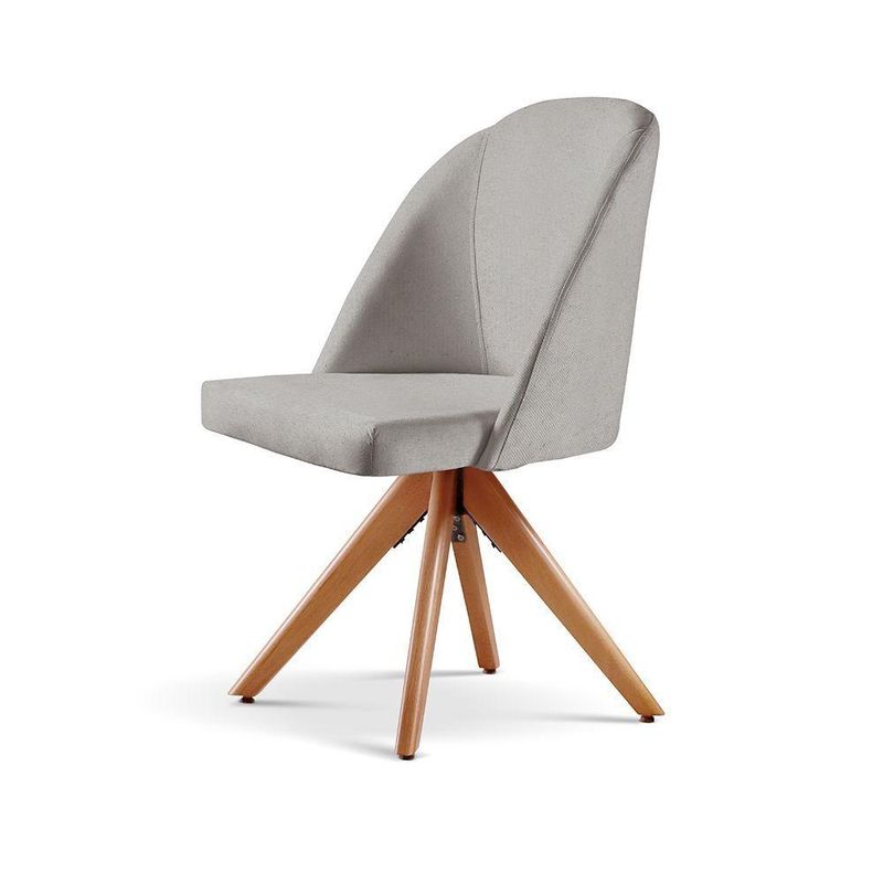 Poltrona Lua Base Giratória De Madeira Cor:linho Cinza Claro 101