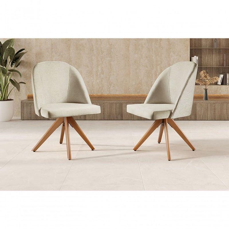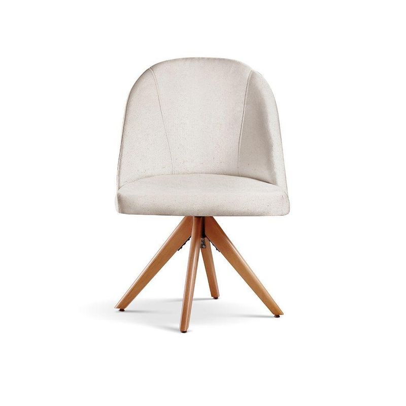 Poltrona Lua Base Giratória De Madeira Cor:linho Nude 100