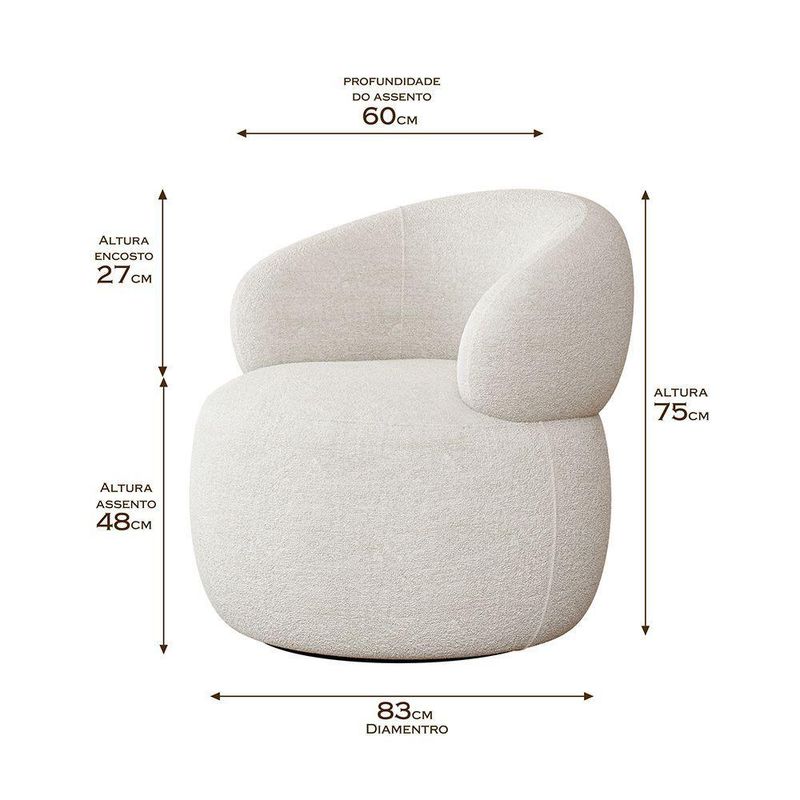 Poltrona Orgânica Atemporal Base Giratória Eloah Bouclé Italiano Off White