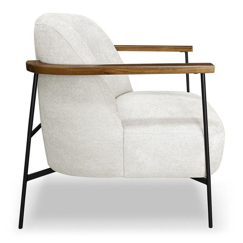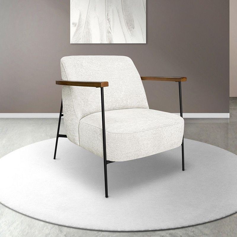 A base da poltronas em aço carbono, complementada por uma pintura epóxi automotiva de alto padrão, não apenas garante durabilidade, mas também adiciona um toque de sofisticação. O assento é feito com espuma HR28, conhecida por sua alta resiliência e conforto, enquanto o encosto utiliza espuma D23 Soft, proporcionando um suporte suave e agradável. O uso de madeira maciça de eucalipto nos braços das poltronas traz a beleza natural da madeira para o design. Já o revestimento em Boucle, com sua textura característica, oferece um acabamento elegante e contemporâneo, tornando a Poltrona Decorativa uma escolha distinta para quem busca conforto e estilo em uma peça.