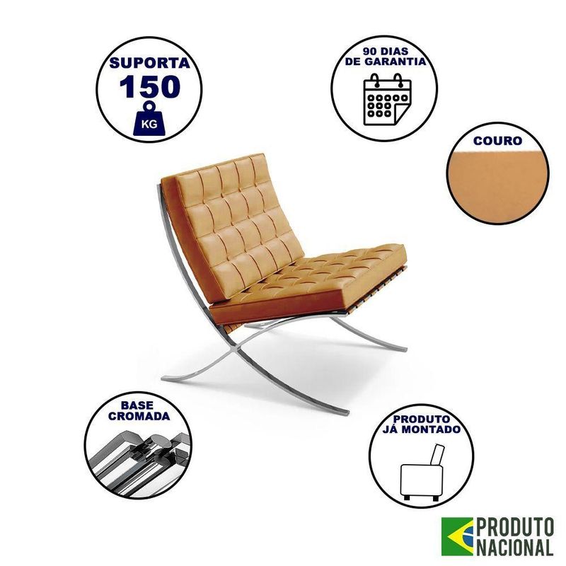 Poltrona Premium Barcelona Cromada Couro Natural Caramelo