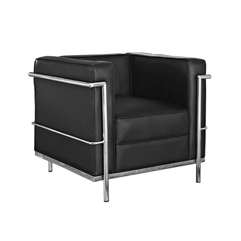 Poltrona Premium Le Corbusier Cromado Em Sintético Preto
