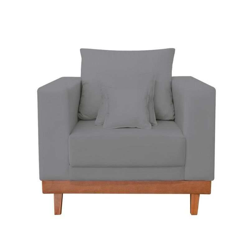 Poltrona Reforçada Linho Pés E Base Madeira Com Almofadas Cor:grafite Grafite