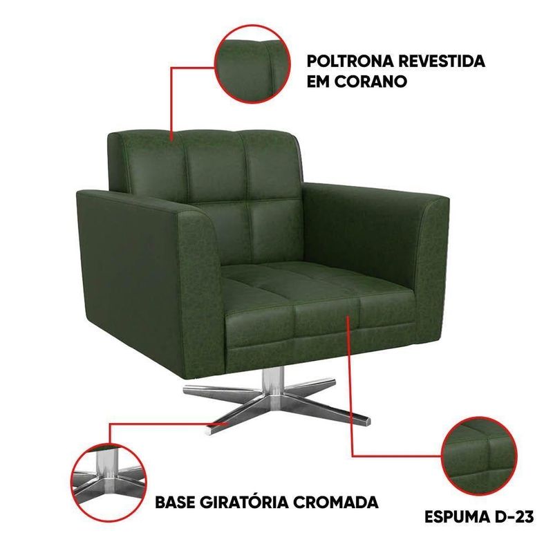 Poltrona Sala Decorativa Elisa Base Giratória Cromada Sintético Pu D03 - D'rossi Verde