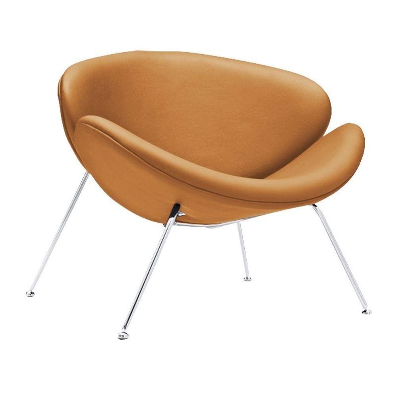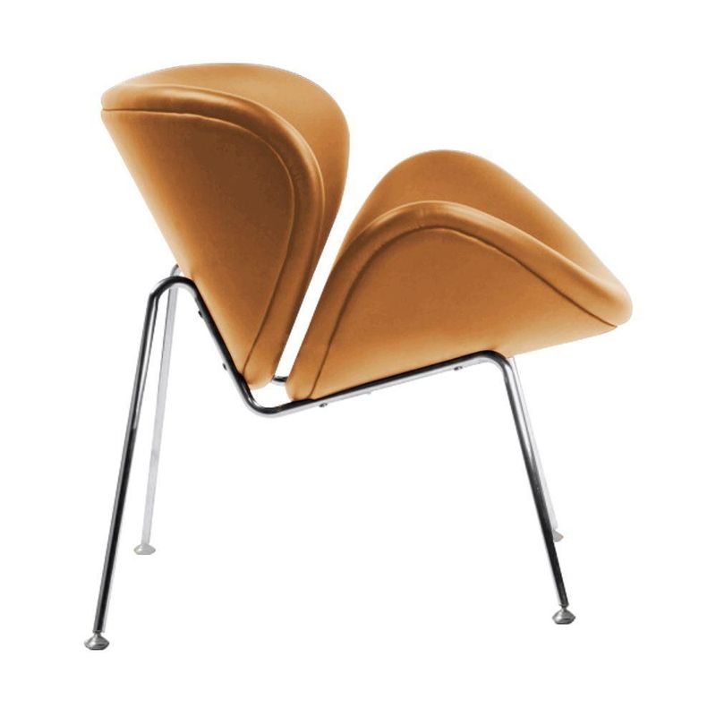 Poltrona Trevo Couro Sintético Caramelo Base Cromada