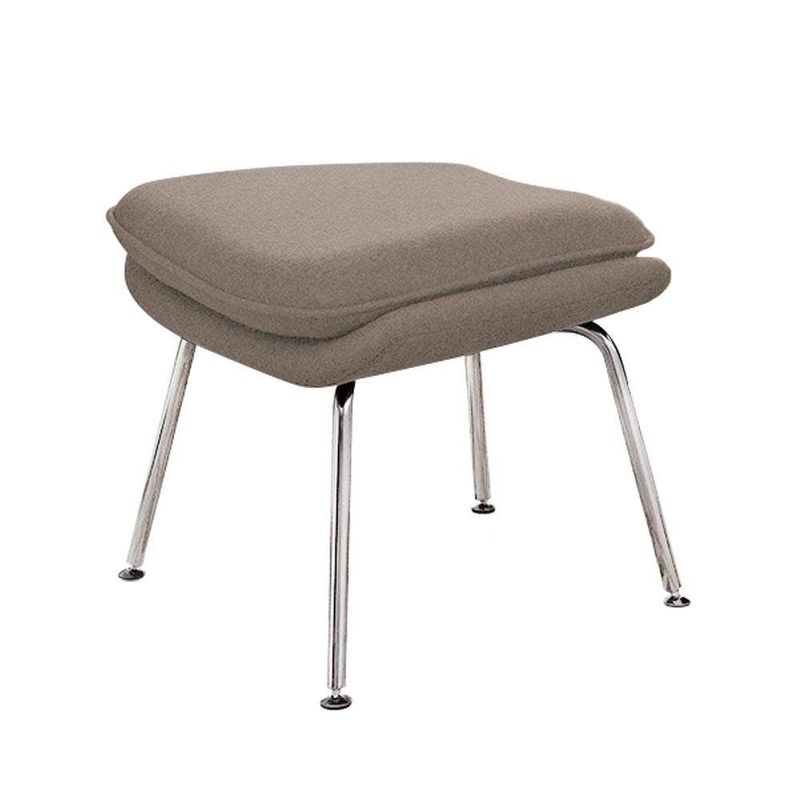 Poltrona Womb Chair Com Puff Cromada Linho Bege