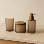 Seu corpo em vidro marrom translúcido remete à suavidade e elegância do café, criando uma atmosfera acolhedora e contemporânea. A tampa com encaixe preciso garante proteção e higiene para os algodões ou discos de limpeza, enquanto o acabamento refinado transforma o item em um verdadeiro elemento decorativo.