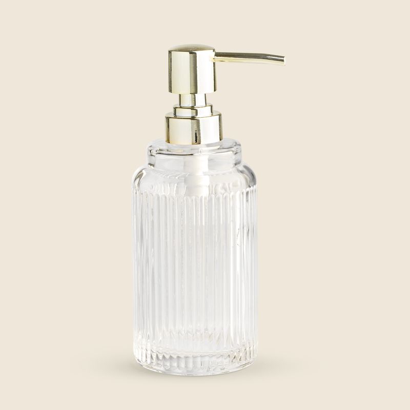 O Porta Sabonete Líquido Glass Dourado - A\CASA é a escolha ideal para quem busca sofisticação nos detalhes. Com corpo em vidro transparente e acabamento metálico dourado, ele adiciona um toque de luxo e elegância à decoração do banheiro, lavabo ou bancada de cuidados pessoais.