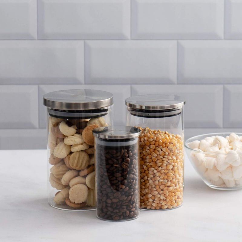 Possui formato cilíndrico que facilita o empilhamento, mantendo despensas bancadas ou armários sempre organizados. Não s ó para a cozinha estes potes também armazenam algodão, fios e carregadores, peças de jogos, pisca piscas material de artesanato, flores secas, cápsulas de café, nozes, material de escritório, e o que mais você quiser guardar.