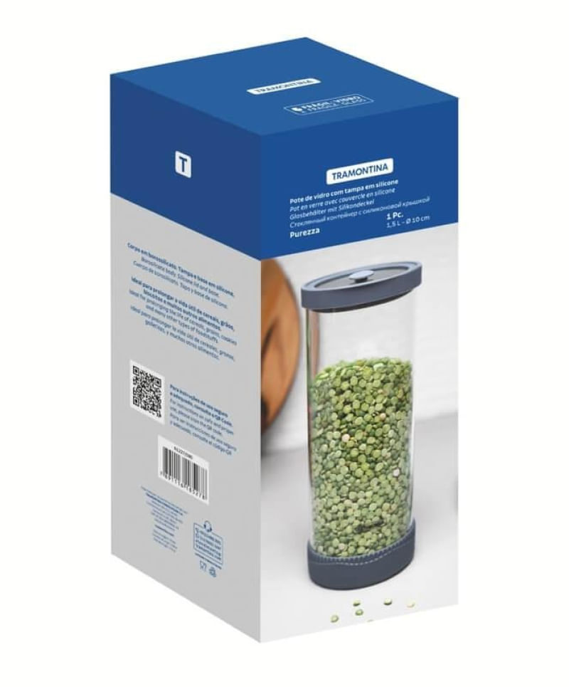 O Pote de Vidro Hermético Tramontina em Borossilicato é a solução perfeita para manter seus alimentos secos frescos por mais tempo, oferecendo funcionalidade, elegância, modernidade e organização à sua cozinha. Feito de vidro borossilicato resistente e livre de BPA, este pote apresenta uma base de silicone que aumenta sua resistência contra impactos, proporcionando um manuseio silencioso. Sua tampa, com borda em silicone e uma tampa extra, garante um fechamento hermético, protegendo os alimentos contra influências externas e preservando sua textura e sabor originais. Além disso, sua característica empilhável permite otimizar o espaço do armário, garantindo que cada cantinho seja utilizado de forma eficiente. Com um design sofisticado e estrutura compacta, este pote adiciona um toque de elegância à sua cozinha. Simplifique a organização e armazenamento de cereais, biscoitos, massas e sementes com os Potros Herméticos de Vidro Tramontina!