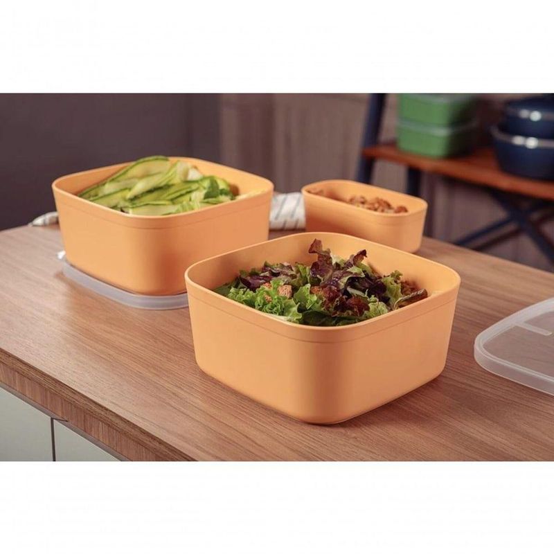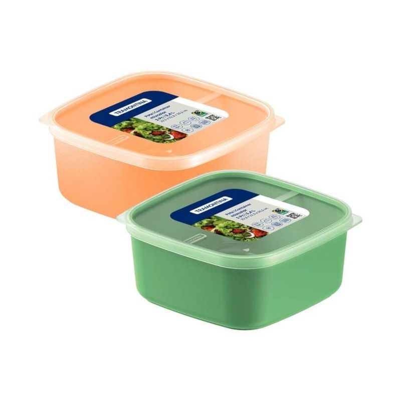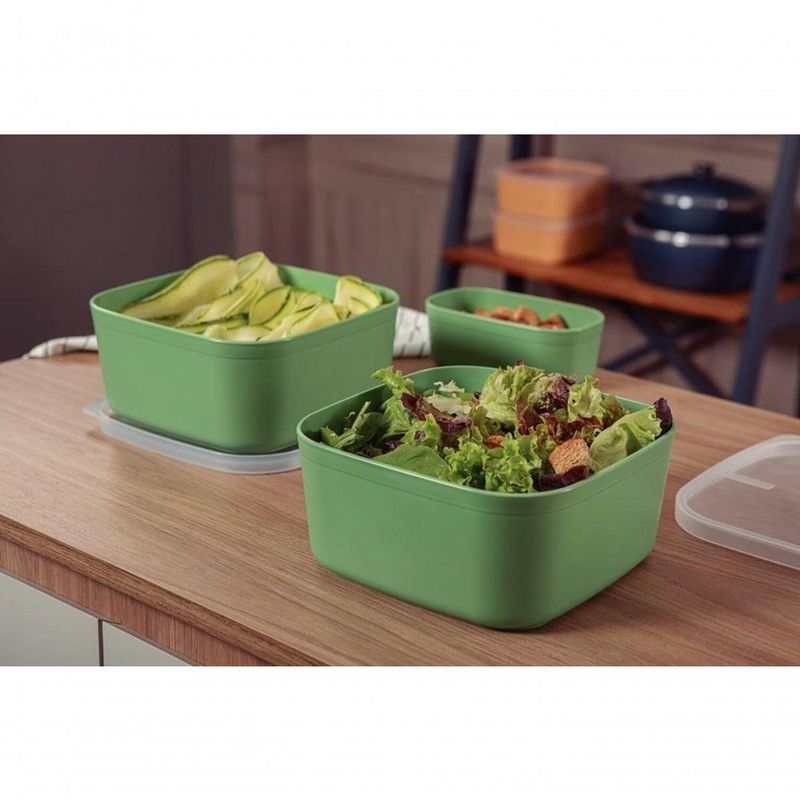 Modo de Uso: Lave bem as peças e seque-as. Para limpeza, use somente esponja macia e detergente neutro. Não utilize materiais abrasivos. Com o uso, é normal que apareçam riscos no interior dos potes. Enquanto estiver congelado, evite impactos. Não coloque o pote em contato direto com superfícies quentes. Ao levar ao micro-ondas, deixe a tampa do pote entreaberta. Recomenda-se mexer o alimento durante o aquecimento no micro-ondas. Nunca utilize a função grill do micro-ondas. Evite aquecer alimentos como chocolates, caramelos, açúcar, manteiga e alimentos gordurosos, pois podem atingir altas temperaturas e danificar seu pote. Não utilize o pote para fazer pipocas no microondas pois irá danificá-lo. Molhos com forte pigmentação, como de tomate, açafrão e curry podem manchar o interior das peças. Guarde os potes separados das tampas para evitar odores. Para descarte dos produtos e embalagem siga as orientações de reciclagem vigentes.- Foto meramente ilustrativa.