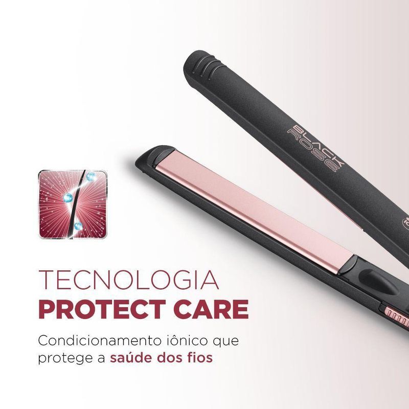 TECNOLOGIA PROTECT CARE: Preserva a saúde dos fios através do condicionamento iônico e aquecimento controlado.