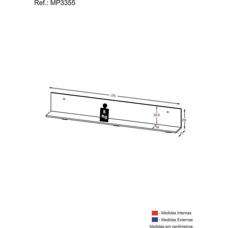 Altura: 26cm | Largura: 175cm | Profundidade: 21cm