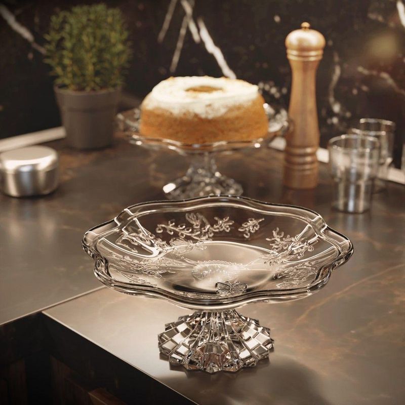 Prato para Bolo 27 cm de Cristal com Pé New Butterfly LyorSirva suas sobremesas com elegância e destaque!