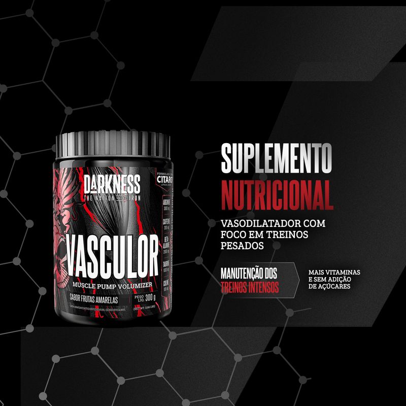 Vasculor é um pré-treino desenvolvido com ativos que maximizam o fluxo sanguíneo e o transporte de nutrientes essenciais para o tecido muscular. Sua fórmula foi criada para aumentar a força e o desempenho em treinos intensos. Contém arginina, citrulina e colina, responsáveis pelo aumento da vascularização muscular, além de cafeína, taurina e beta-alanina, que promovem a melhora do desempenho pelo aumento da energia muscular e redução da fadiga.