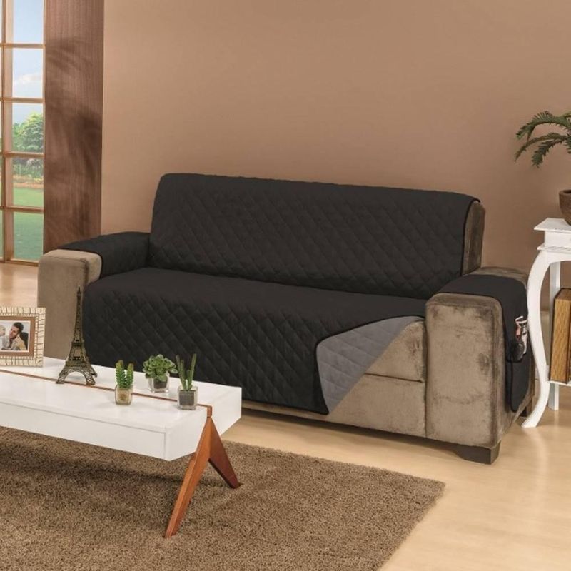 Protetor De Sofá Dupla Face Manu 3 Lugares - Preto/ Cinza