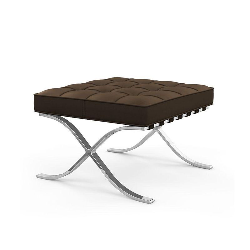 Puff Barcelona Cromado Em Couro Natural Marrom