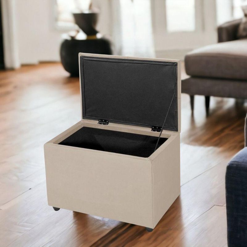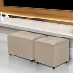 Puff Baú 60cm Porta Brinquedo Organização Assento Decorativo Cor:bege