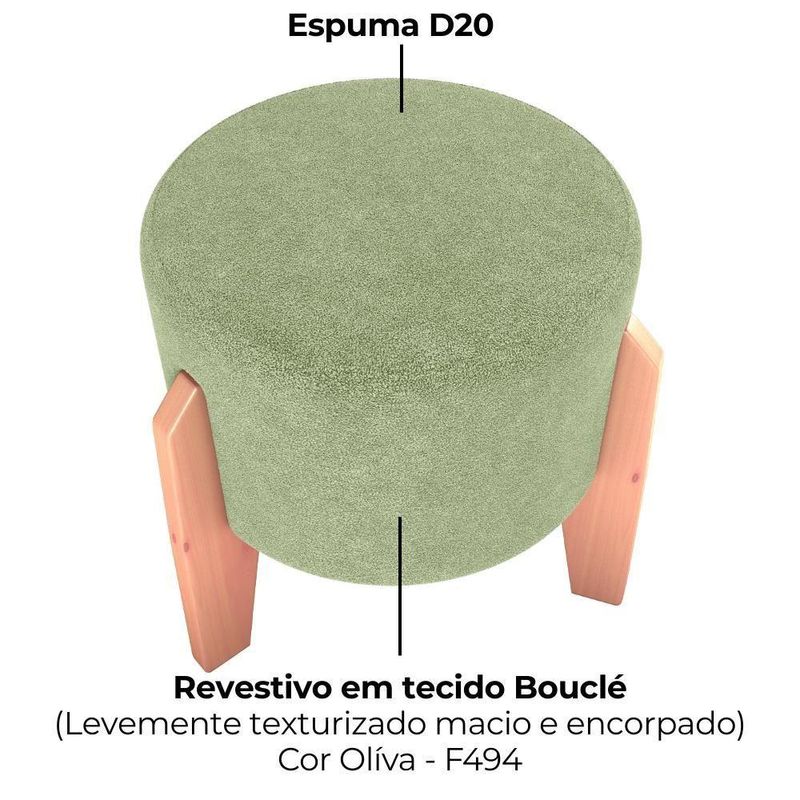 Puff decorativo Luxo, design moderno com um toque de sofisticação para o seu ambiente. Estrutura em Madeira de Eucalipto (de reflorestamento) e MDF, estofado com espuma D20 e revestido em Bouclé (levemente texturizado macio e encorpado). Seu diferencial está nos pés em madeira maciça, com formato geométrico que traz estabilidade e estilo único. Suporta até 110 kg. Este produto será entregue em 01 volume.