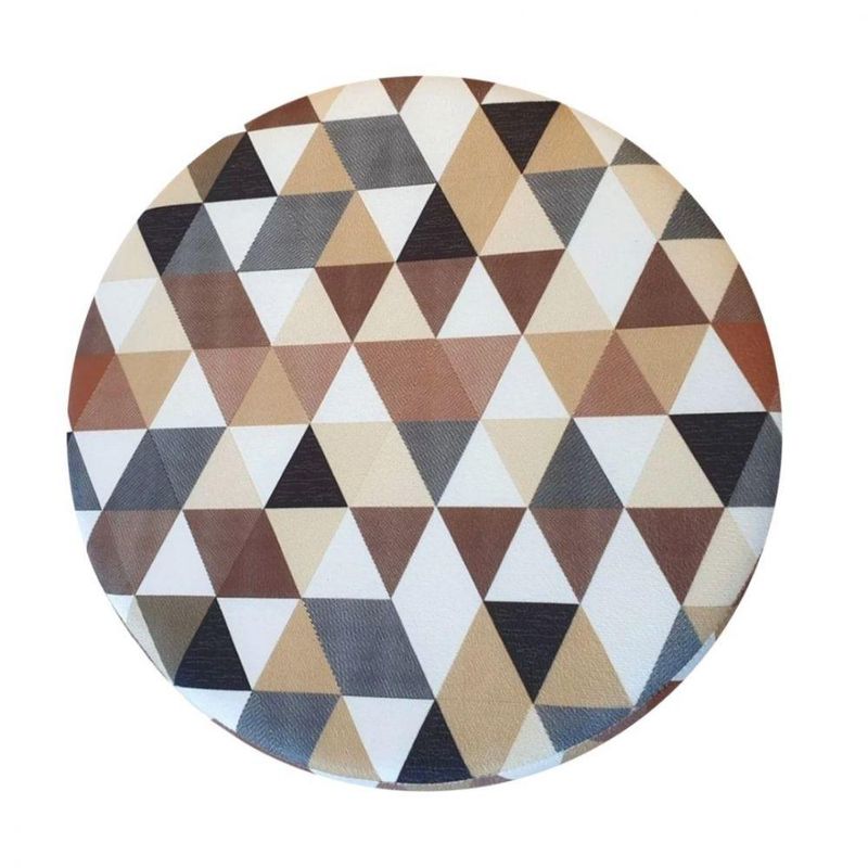Puff Decorativo Redondo Com Pés Palito-triangûlo Bege