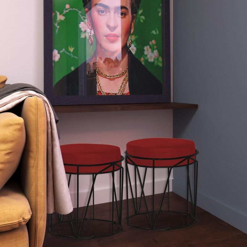 Puff Decorativo Sala de Estar Base Preto Chloe Veludo Vermelho - Gran Belo produto com o design único e elegante. Tem a estrutura firme e resistente com o revestimento de cores variações de cores incríveis. Produzido com perfeição a cada detalhe que se vê, decore o seu espaço com estilo dando aquele destaque maravilhoso, leve e garanta já o seu! Dimensões do Puff: