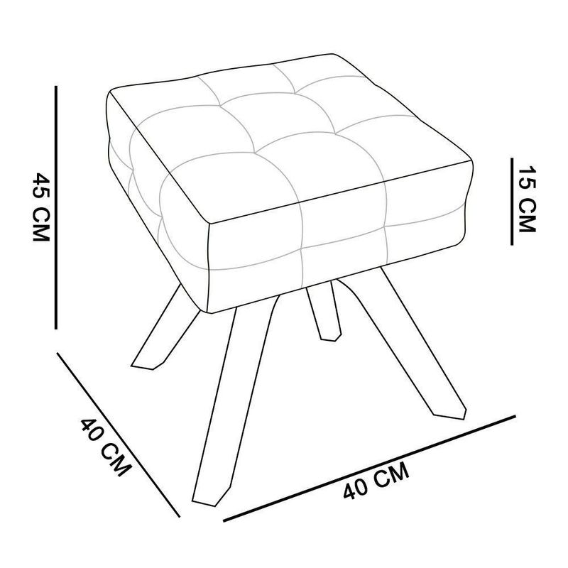 O nosso grande sucesso Poltrona Elisa, agora tem o seu puff para fazer o conjunto e deixar o seu espaço com uma combinação perfeita. Vai encher seu ambiente de cor e modernidade, seu design feito com linhas retas proporciona conforto ao sentar-se sem falar em seus detalhes no assento, um luxo! Sua estrutura é confeccionada em madeira de eucalipto proveniente de reflorestamento, o estofamento do assento é composto de espuma prorelax D-23, e é revestido em tecido suede, sua sustentação é dada pela base giratória em madeira, suportando em média até 80 Kg. Dimensões Altura: 45 cm Largura: 40 cm Profundidade: 40 cm Espessura do assento: 15 cm Tamanho dos pés: 30 cm Peso: 11 KG Especificações do Produto Estrutura: Madeira Eucalipto Espuma: Prorelax D-23 Tecido: Suede (100% Poliéster) Tipo de pés: Base Giratória em Madeira Peso Suportado: Até 80 Kg Garantia: 90 dias contra defeito de fabricação Montagem: O produto vai montado, apenas rosquear os pés Instruções de Limpeza: Utilizar um pano limpo e levemente úmido Você irá receber: 01 volume com 01 produto Observações Relevantes - Todos os produtos vão embalados com total segurança; - As cores dos produtos podem sofrer alterações dependendo do seu monitor; - Para futuras compras, não garantimos a mesma tonalidade de cor, pois existe variação a cada lote do fabricante do tecido; - As imagens são meramente ilustrativas, não acompanham objetos de decoração e eletros; - Confira as dimensões do produto no momento da compra e certifique-se de que passará normalmente por escadas, elevadores, portas e corredores; - Importante: Por se tratar de estofado as medidas podem ter uma pequena variação em até 3 cm; - Não nos responsabilizamos no ato da entrega por montagens, desmontagens, instalações de produtos; - Não nos responsabilizamos no ato da entrega por subir escadas, elevadores, nem utilização de guinchos ou equipamentos similares para acesso a pisos superiores em apartamentos; - A entrega do produto é realizada em todo território nacional, até onde as rodovias alcançam, entregas fluviais ou aéreas devem ser cotadas a parte; - Observando as orientações acima, evita-se futuros desagrados ou imprevistos com a entrega do produto. Havendo despesas adicionais, serão de responsabilidade do cliente;