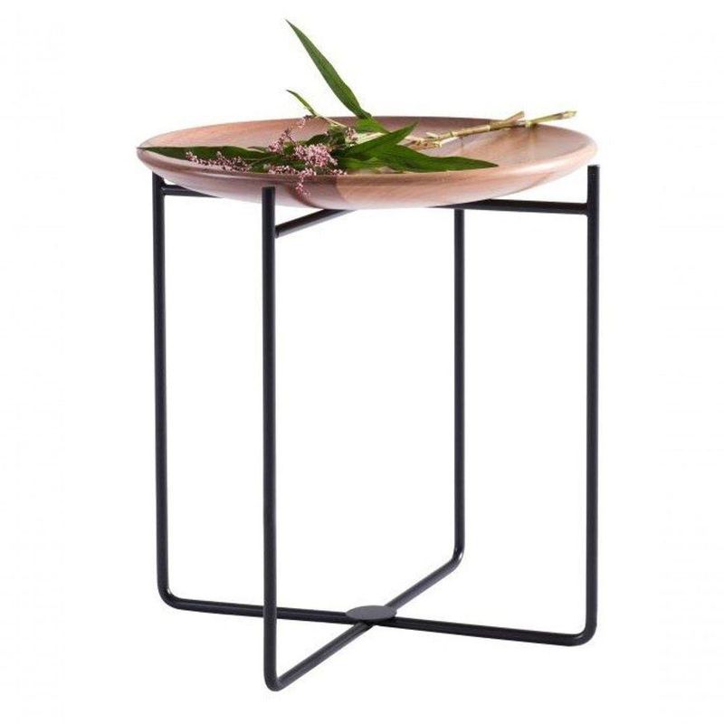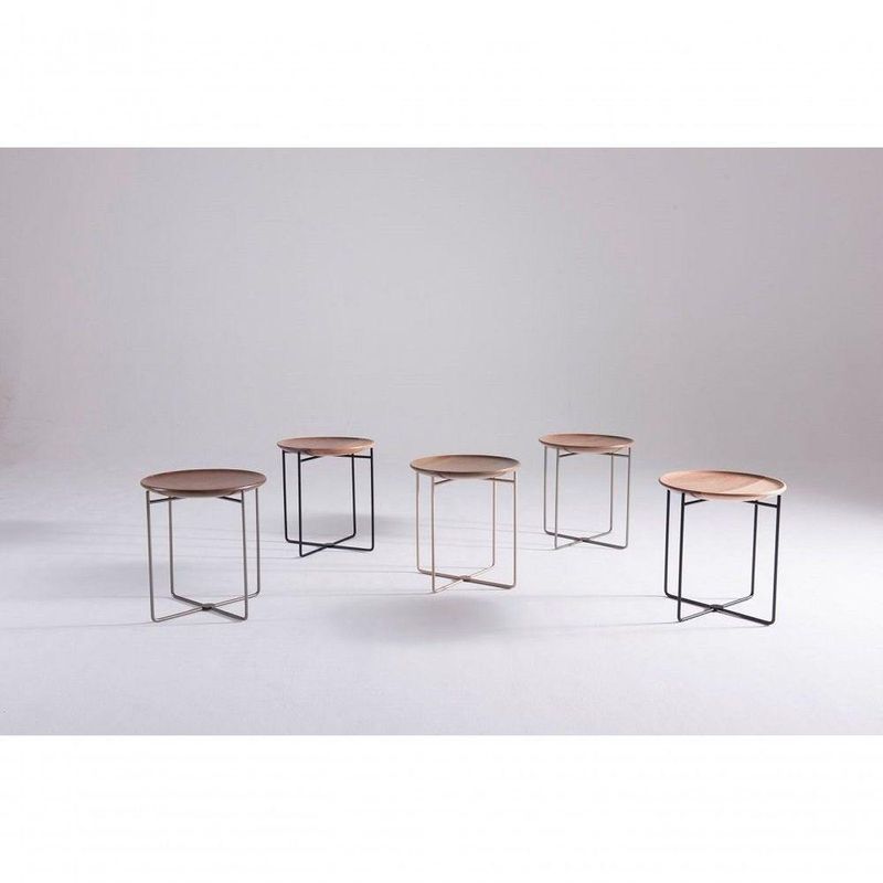 Puff Madeira 0,46 Diâmetro Base Metal Maseira Tampo Madeira Jequitibá -