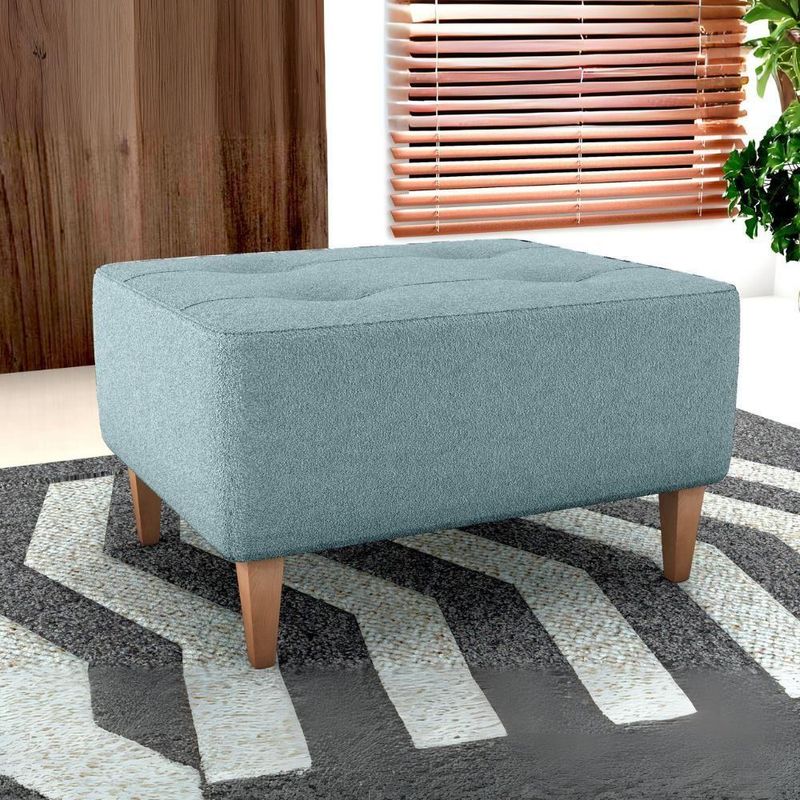 Puff Piva, praticidade e charme para complementar sua decoração. Estrutura em Madeira de Eucalipto (de reflorestamento), estofado com espuma D20 e revestido em tecido bouclê (textura encorpada macio ao toque). Também possui detalhes na costura do assento, 4 pés em madeira e suporta até 110 kg. Este produto será entregue em 01 volume.