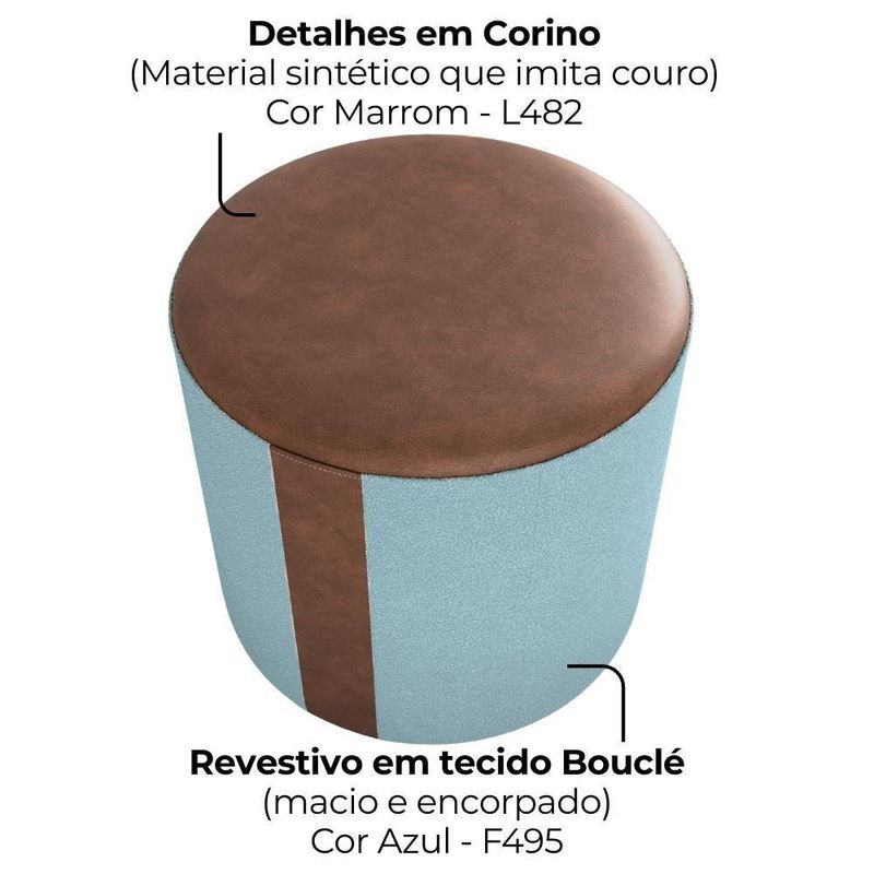 Puff Redondo Copenhage Corano Marrom Boucle Azul Milani Store Azul