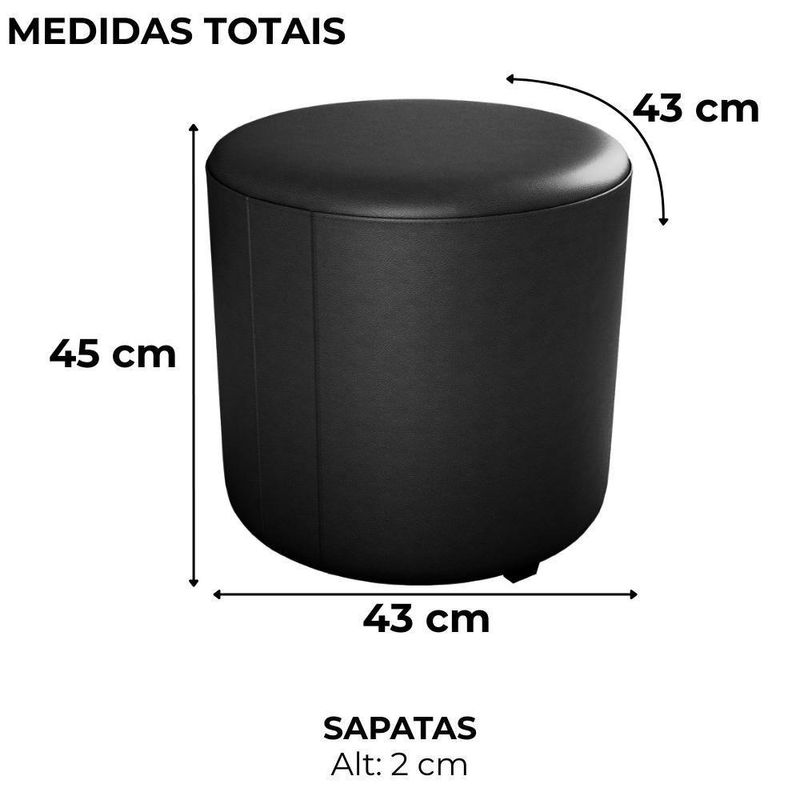 Puff Redondo Decorativo Copenhage Corano Preto Milani Store Preto