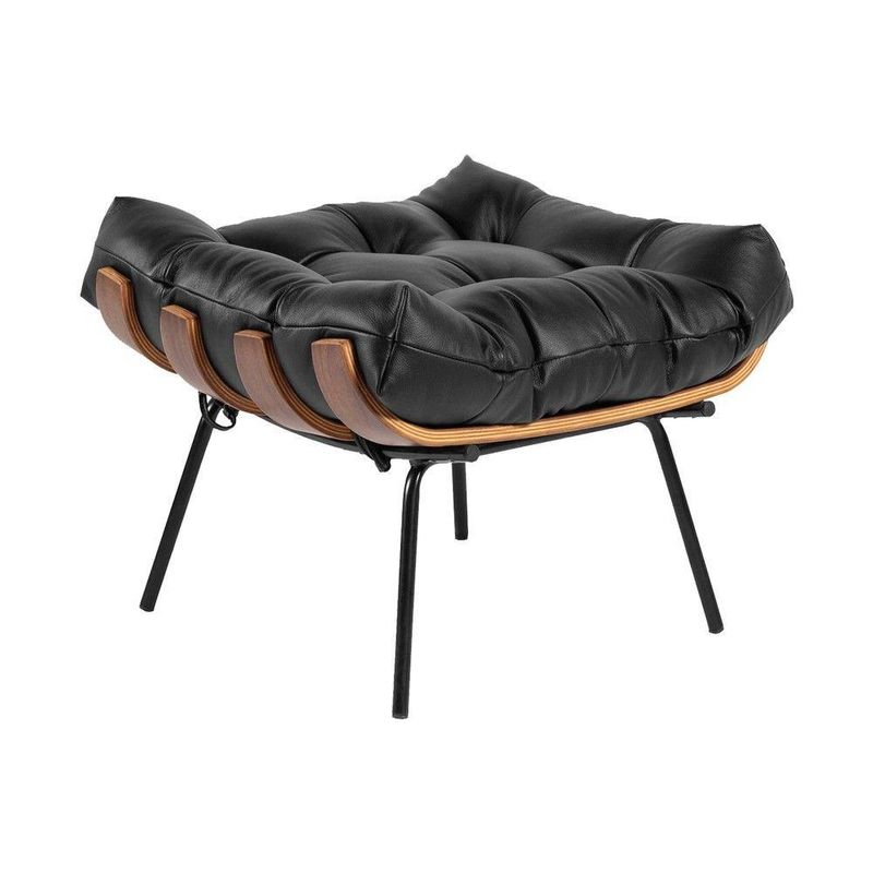 Puff Decorativo Sala De Estar Costela Couro Preto Gran Belo