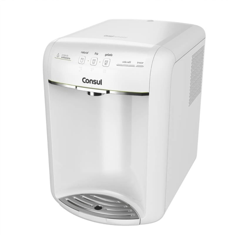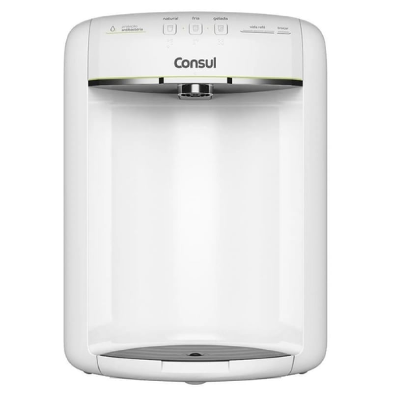 Com sistema de alta capacidade de refrigeração e um painel funcional, o Purificador Consul permite a seleção entre 3 níveis de temperatura, natural, fria ou gelada, além de possuir indicador gradual de vida do refil, te lembrando sobre a hora certa de troca-lo!Com sistema de compressor, o Purificador de Água Consul possui uma alta capacidade de refrigeração, gelando mais água em muito menos tempo. Ter água gelada nunca foi tão fácil!Bem pensado é ter um painel funcional que te permite escolher entre três temperaturas diferentes, natural, fria ou gelada, facilitando o seu dia a dia até nas escolhas mais simples!Display gradual de vida útil do refil que te ajuda a lembrar a hora certa de troca-lo, garantindo uma água sempre pura e ideal para o consumo!Através de um filtro com eficiência bacteriológica, a Consul traz mais saúde para sua família!CaracterísticasVazão nominal: 40 - 60 L/h (litros por hora)Eficiência Bacteriológica: Com Eficiência bacteriológicaRedução de Cloro Livre: Com redução de Cloro livreRetenção de Partículas: Classe AEficiência Bacteriológica: Com Eficiência bacteriológicaPressão de funcionamento:: 0,5 barTensão: 220 V (CPB36ABBNA)Material de fabricação: ABS, Poliacetal, Silicone e Polipropileno.Cor: BrancoDimensões:Largura25,3 cmProfundidade33,4 cmAltura35,5 cmPeso: 12 kg