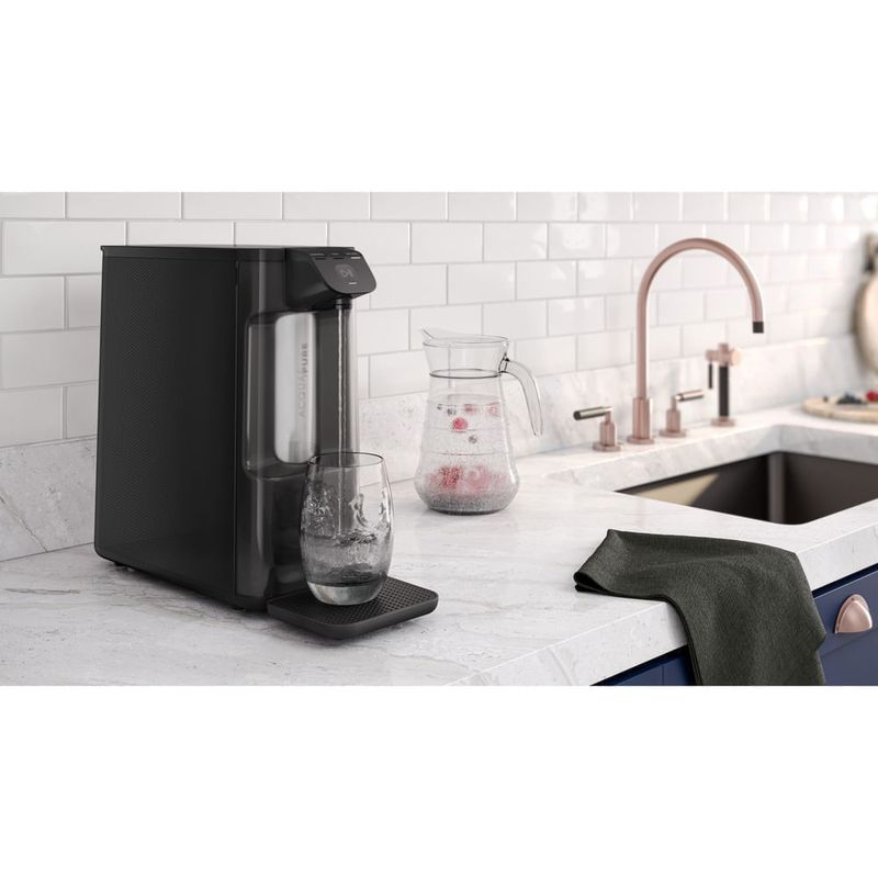 Equipado com filtro com Tecnologia Acqua Pure, reduz cloro, odores e outras partículas presentes na sua água, além de inibir o desenvolvimento de bactérias², para uma água pura e saudável.