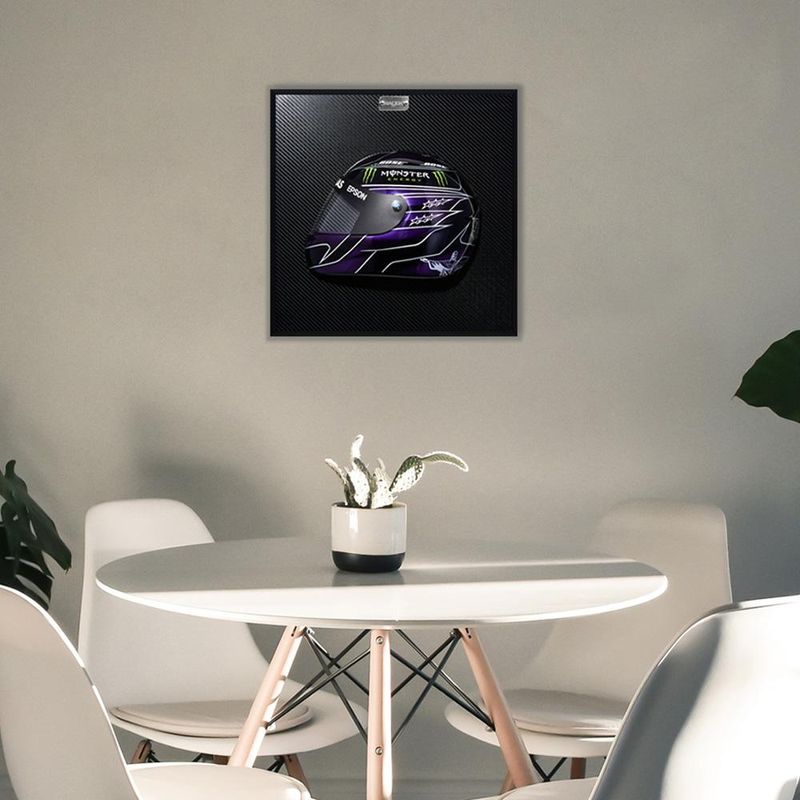 Quadro Capacete 3D F1 - Além de muitas contribuições históricas, atributos como design, velocidade, competitividade e principalmente superação são automaticamente agregados a sua personalidade quando colocamos uma de nossas obras em seu ambiente. Peças são produzidas em polímero plástico injetado e passam por um trabalho artesanal de personalização, processo onde são efetuadas várias etapas até chegarem em um polimento de alto refinamento. Imprima sua personalidade e elegância.