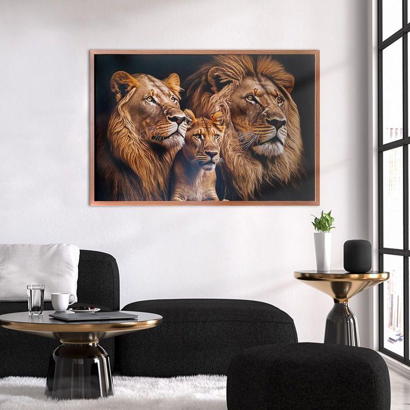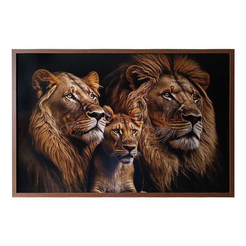 Quadro Decorativo Leões Moldura Cx Alta 100x66 Titulos Moldura Madeira