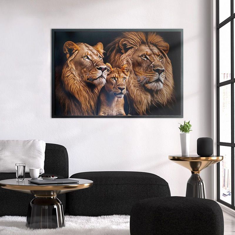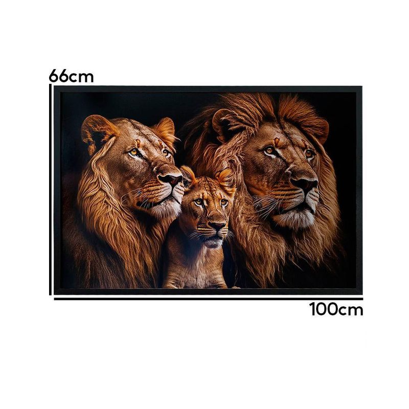 Quadro Decorativo Leões Moldura Cx Alta 100x66 Titulos Moldura Preta