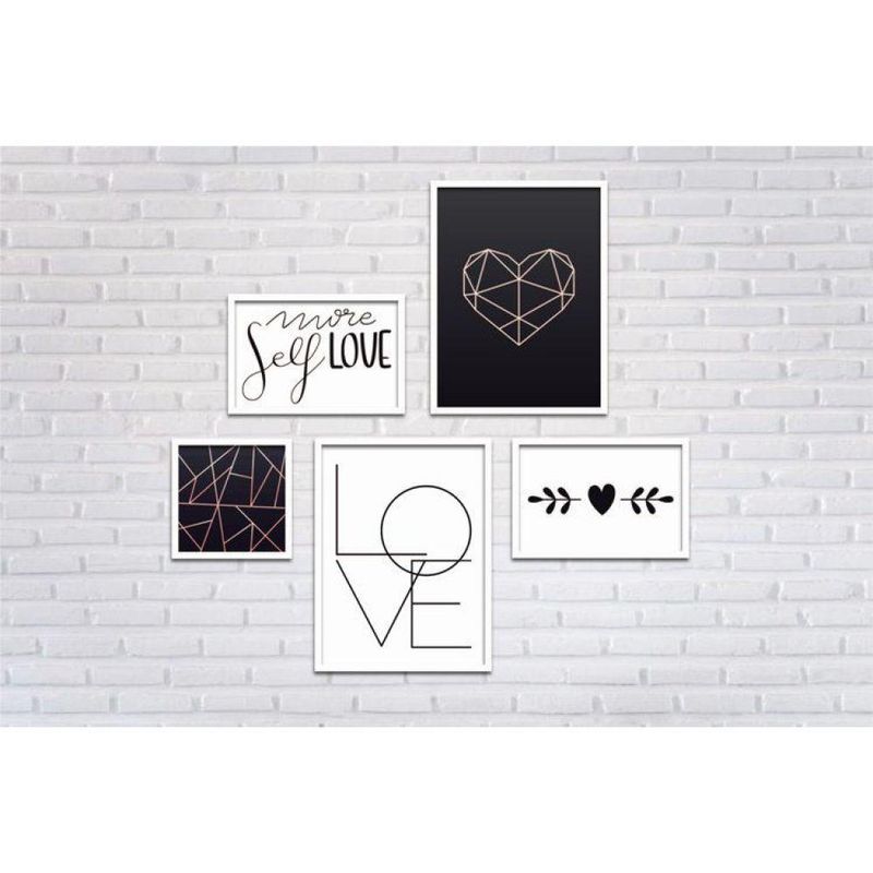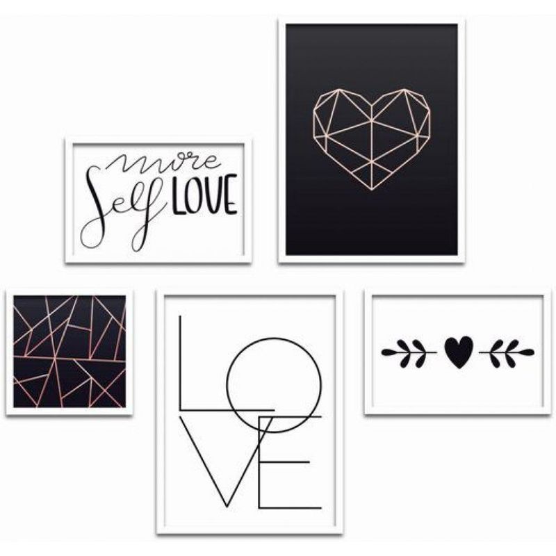 Conjunto Quadros Decorativos 5 Peças Love Frase Titulos Moldura Branca