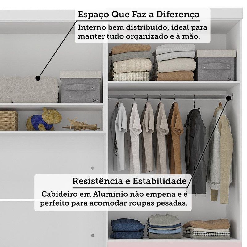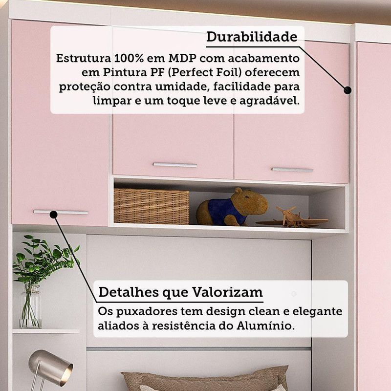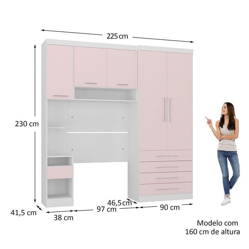 Quarto 5 Portas 5 Gavetas Cab St Alpes Master Luciane Móveis Branco Pf/rosa Pf