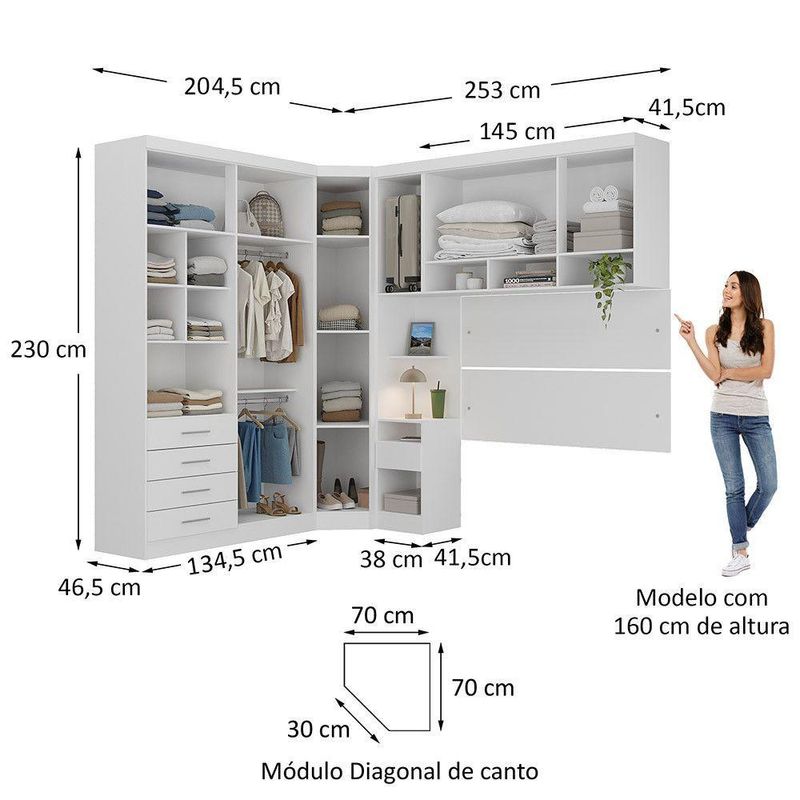 - 1 Guarda Roupa de Canto Diagonal Modulado 70cm 1 Porta Alpes Luciane Moveis 230 x 70 x 70 (Alt x Larg x Prof - cm)