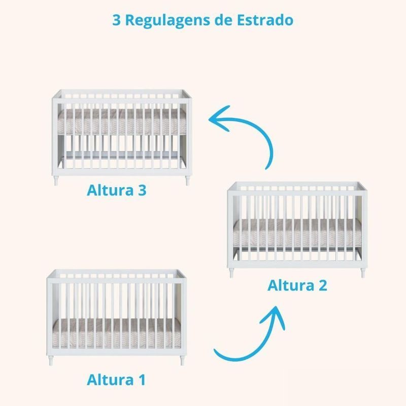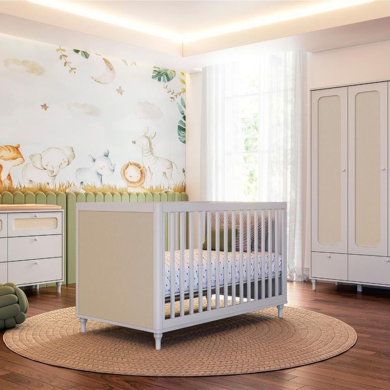 O Quarto Completo Fofura da Divicar reúne estilo, segurança e funcionalidade em um ambiente encantador. O berço, com design provençal e cantos arredondados, é feito em MDF com pés e talinhas de madeira maciça, possui três regulagens de altura e se transforma em mini cama, garantindo praticidade ao longo dos anos. A cômoda, também em MDF com acabamento laqueado e pintura atóxica, conta com seis gavetas de trilhos telescópicos e sistema anti tombamento, proporcionando organização e segurança. O guarda Roupa completa o conjunto com portas detalhadas, gavetas suaves, compartimentos para roupas e espaço para maleiro, tudo pensado para trazer conforto e sofisticação ao quarto do bebê.DIFERENCIAIS E BENEFÍCIOS DO BERÇO:Estilo Provençal: Proporciona um visual clássico e elegante, ideal para criar um ambiente aconchegante e atemporal no quarto do bebê.Fabricado em MDF: Oferece durabilidade e resistência, garantindo que o berço mantenha sua estrutura e beleza ao longo dos anos.Pés em madeira maciça: Proporcionam maior estabilidade e robustez, assegurando um suporte firme e seguro para o bebê.Talinhas das grades em madeira maciça, com formato quadrado: Garante mais segurança e sofisticação, além de facilitar a ventilação e visibilidade do bebê no berço.Cabeceiras com cantos arredondados: Aumenta a segurança, evitando acidentes com bordas afiadas, além de dar um toque suave ao design.3 regulagens de altura para o estrado: Facilita o acesso ao bebê em diferentes fases, proporcionando mais conforto para os pais e segurança à medida que o bebê cresce.Transforma em mini cama: Oferece uma solução prática e econômica, acompanhando o crescimento da criança por mais tempo sem a necessidade de um novo móvel.Todo Branco: Traz versatilidade na decoração, permitindo combinações com qualquer estilo de quarto e transmitindo um visual clean e moderno.Clean, sem parafusos ou furações aparentes: Garante um acabamento impecável, com um design minimalista e sofisticado, além de ser fácil de limpar e manter.