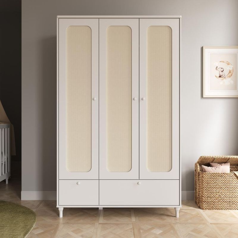 01 Cômoda 6 Gavetas Coleção Fofura Cor Branco com Rattan01 Guarda Roupa 3 Portas Coleção Fofura Cor Branco com RattanDIMENSÕES DOS PRODUTOS MONTADOS:Berço - Alt. 84,3 Larg. 134,8 Prof. 75,9 cmCômoda - Alt. 85 Larg. 118 Prof. 45,2 cmGuarda Roupa - Alt. 190,7 Larg. 117,8 Prof. 46,20 cmGARANTIA:12 MesesNÍVEL DE PRODUTO (Basic | Standard | Premium):Premium - Produto de altíssima qualidade, com acabamento refinado Material: MDF | Acabamento: Laqueado | itens inclusos: 01 Berço + 01 Cômoda + 1 Guarda Roupa | Marca: Divicar | Cor: branco