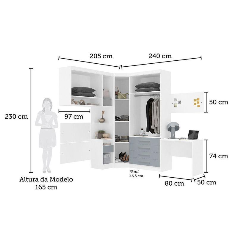 1 Guarda Roupa de Canto Diagonal Modulado 70cm 1 Porta Alpes Luciane Moveis