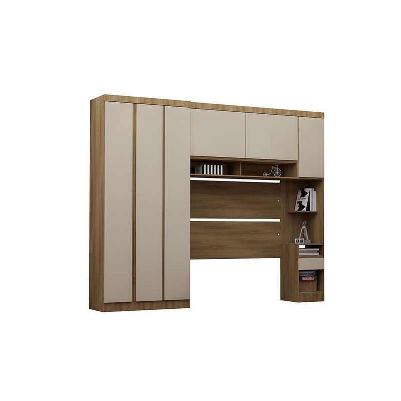 Quarto Casal Guarda Roupa Mesa De Cabeceira 284cm Veneza Luc Avelã Pf/arenas Pf