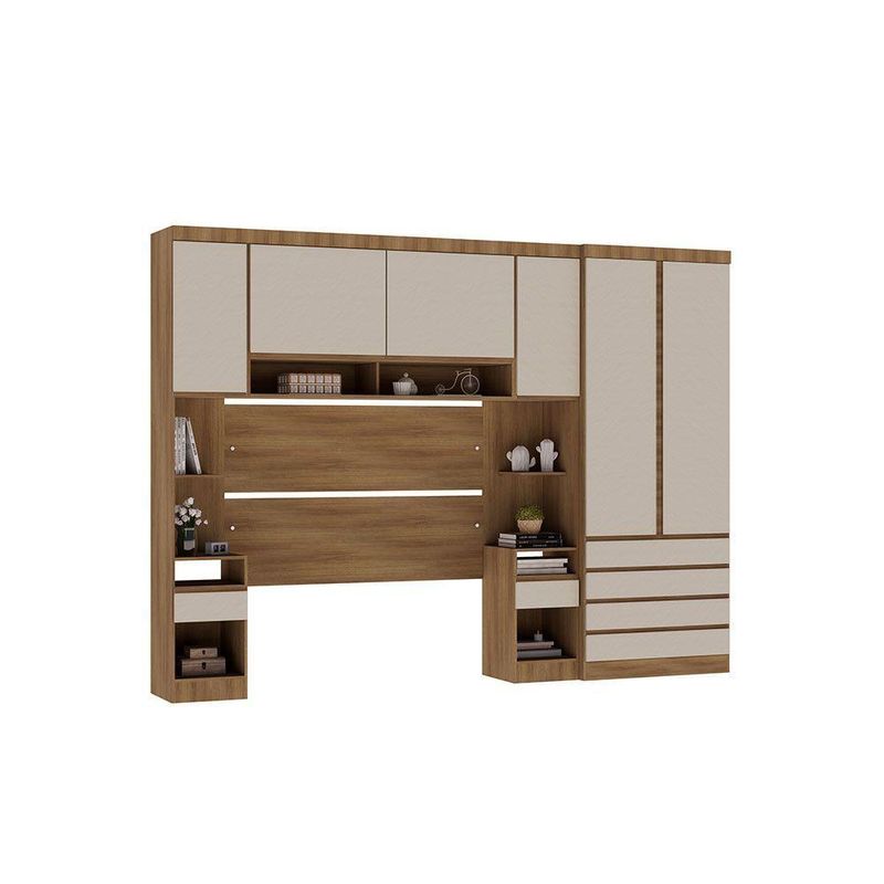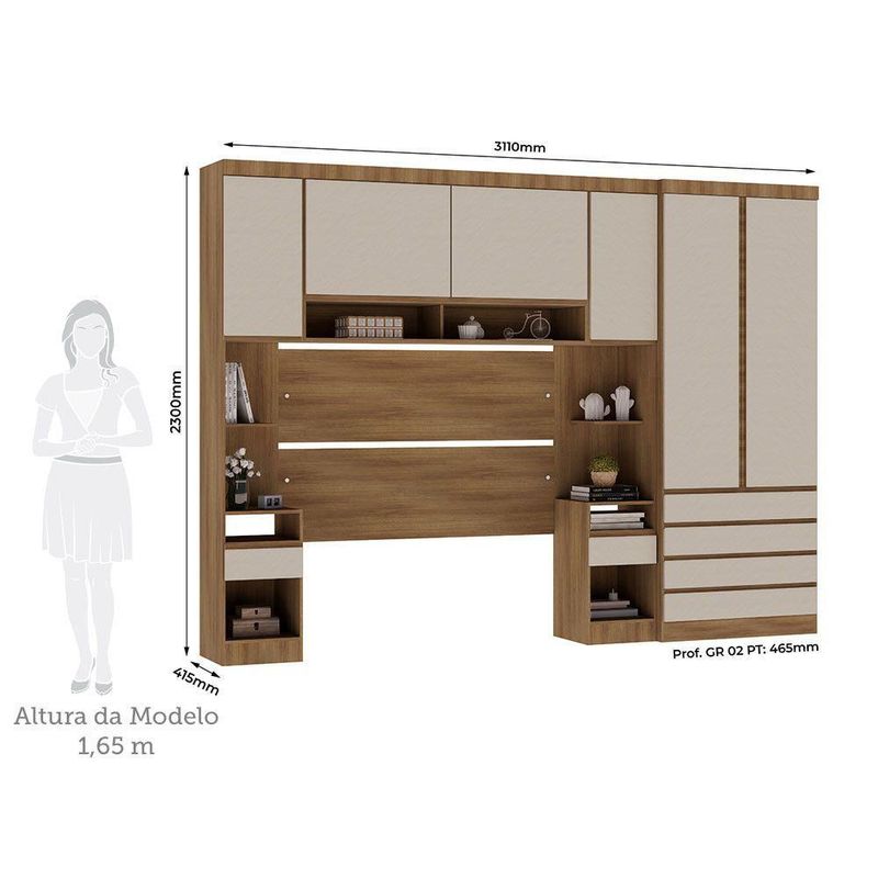 Quarto Casal Guarda Roupa Mesas De Cabeceira 311cm Veneza Lu Avelã Pf/arenas Pf