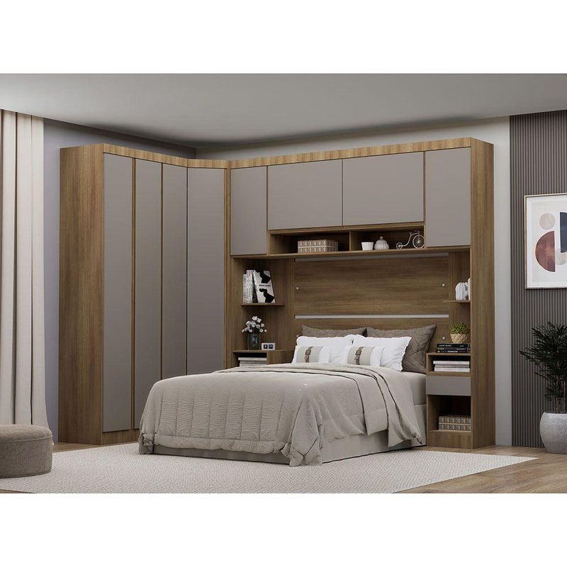Transforme seu quarto em um espaco completo e sofisticado com o Quarto de Canto de Casal Veneza da Luciane Moveis. Com design funcional, acabamento elegante e excelente aproveitamento de espaco, ele oferece praticidade e estilo no seu dia a dia.