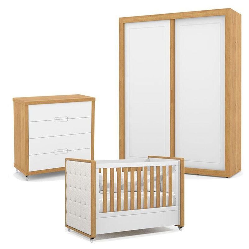 Quarto De Bebe 2 Portas Tutto New Com Capitonê New Boucle E Gaveteiro Freijó Branco Acetinado - Matic