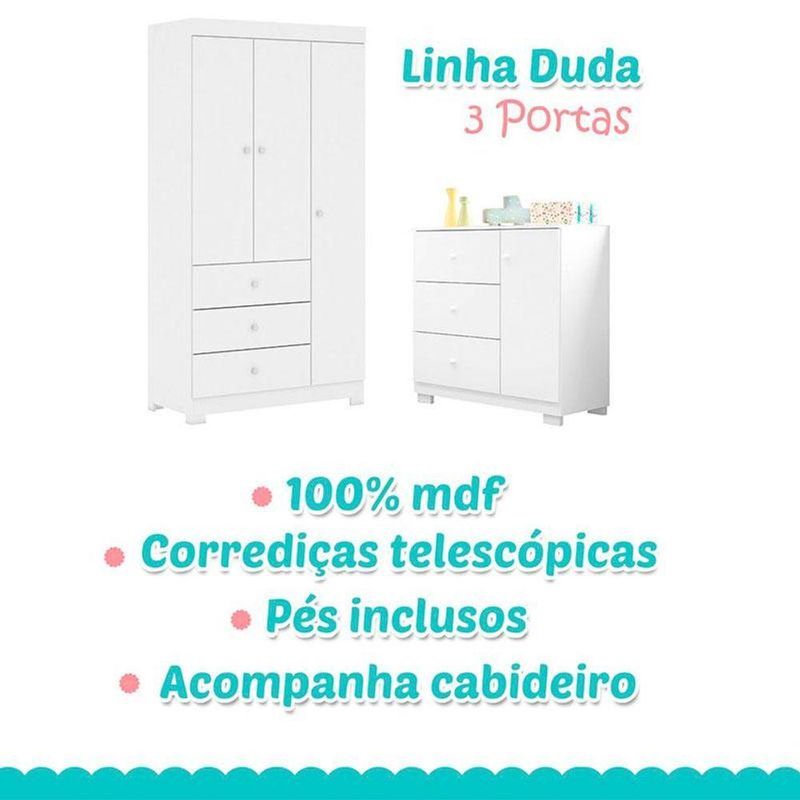 Profundidade: 42 cmGuarda Roupa Infantil Duda 3 Portas Branco Brilho – Phoenix Baby- Desenvolvido em 100% MDF de 12/15mm