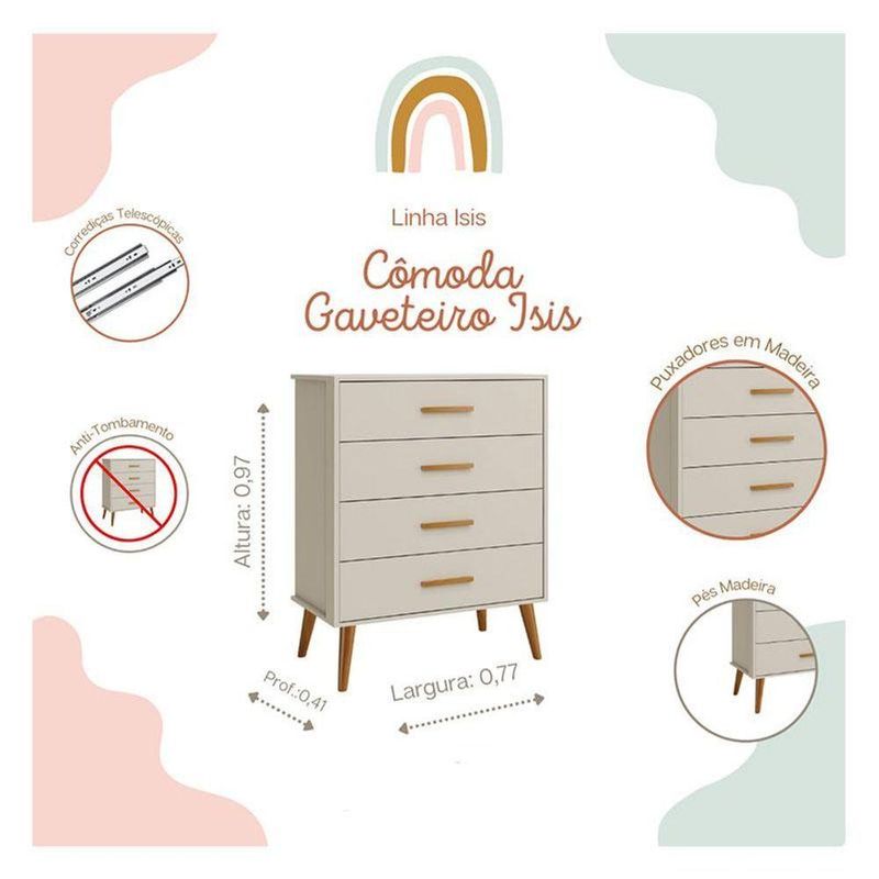 Profundidade:77 cmCômoda Gaveteiro Infantil Isis Areia Acetinado - Reller